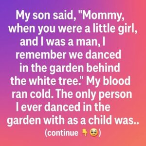 My son said, “Mommy, when you were a little girl, and I was a man, I remember we danced in the garden behind the white tree.” My…
