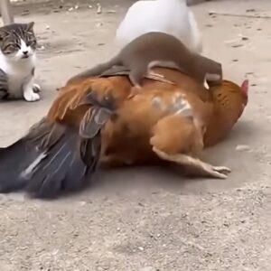 It started as an ordinary morning in the yard, with the animals going about their usual routines. The rooster strutted confidently, pecking at the ground and asserting…