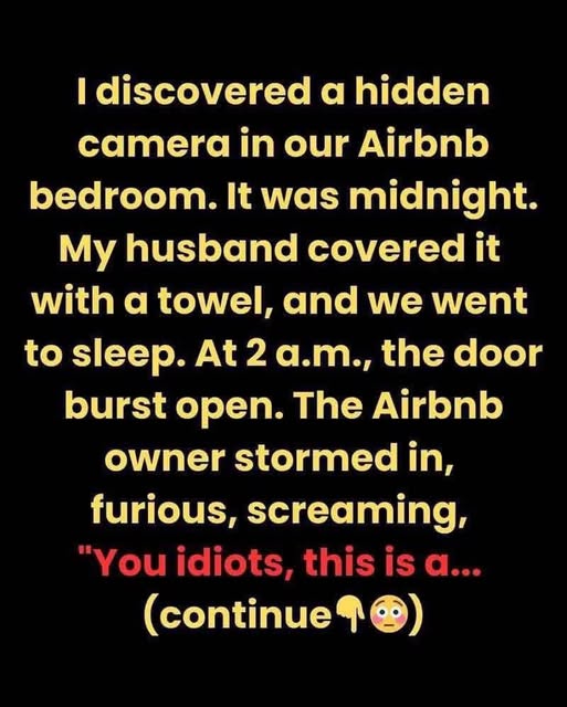 I discovered a hidden camera in our Airbnb bedroom. It was midnight. My husband quickly covered it with a towel, and we went to sleep.At 2 a.m., the door burst open. The Airbnb owner stormed in, furious, screaming, “You idiots, this is a camera to see the outside! Why have you covered it?”