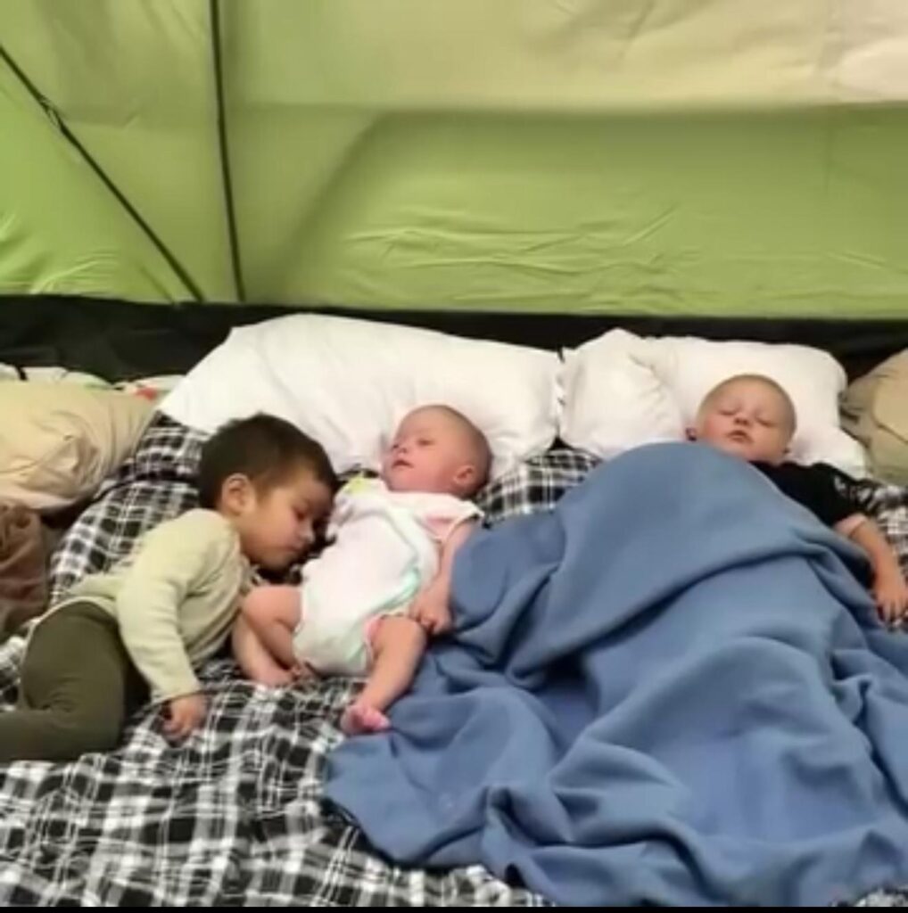 They’re still asleep right now. All three of them, piled together under that thin blue blanket like it’s the coziest thing in the world. I watch their chests rise and fall and pretend—for a second—that this is a vacation.