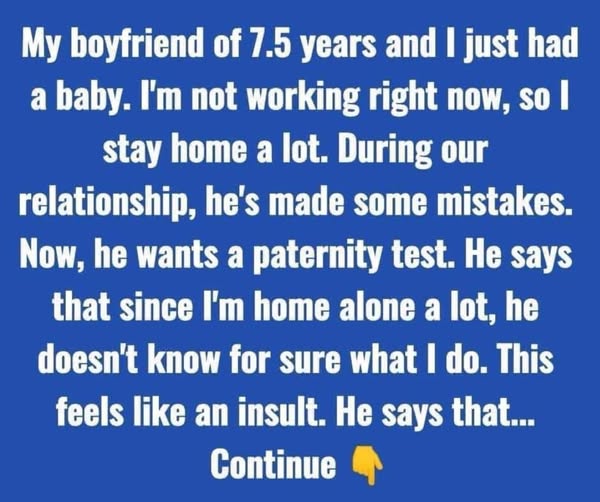 This story is about a young mother dealing with trust issues after her boyfriend asks for a paternity test for their newborn daughter. This request brings up feelings of doubt and questions about trust, just when they should be celebrating the birth of their child