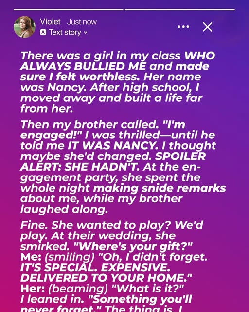 When my brother announced his engagement, I smiled and congratulated him — until I saw the photo of his fiancée. Nancy. My childhood tormentor. Behind her sweet smile was the same cruel girl who made my school years hell. She played the perfect angel in front of adults, but behind closed doors, she was a master of whispers and insults. Every day felt like a silent battle with her, and I was always the losing side.