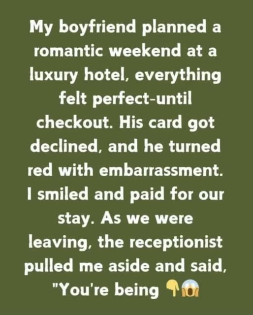 Story 10: My boyfriend planned a romantic weekend at a luxury hotel. Everything felt perfect—until checkout. His card got declined, and he turned red with embarrassment. I smiled and paid for our stay.