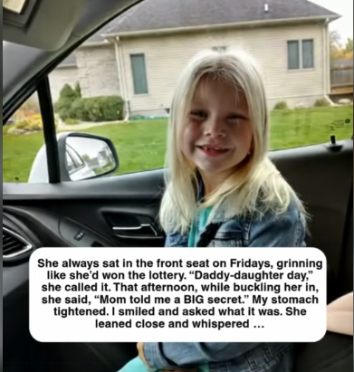 She always sat in the front seat on Fridays, grinning like she’d won the lottery. “Daddy-daughter day,” she called it. That afternoon, while buckling her in, she said, “Mom told me a BIG secret.” My stomach tightened. I smiled and asked what it was. She leaned close and whispered, “We might be moving to a new house soon.”