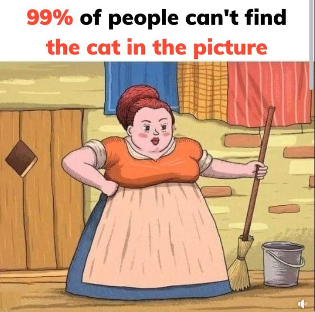 Have you ever looked at an image and felt like something was hiding right in front of you? That’s exactly the case with the latest viral puzzle taking over social media. The picture shows a woman holding a broom inside a warm and colorful home—nothing unusual at first glance. But hidden within the illustration is a cat so well camouflaged that most people scroll past it without ever noticing. This little mystery has sparked thousands of comments from frustrated viewers who simply can’t find what’s hiding in plain sight.