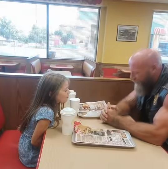 Each Saturday, the biker ordered two Happy Meals and sat alone in the same booth by the window. Minutes later, a young girl—no older than seven—would walk in and join him. The two of them laughed and chatted like old friends, sharing meals in a way that didn’t quite fit the picture most people had in their heads. To outsiders, the sight raised countless questions: Who was she? Where were her parents? And why was this frightening man meeting with her in secret?