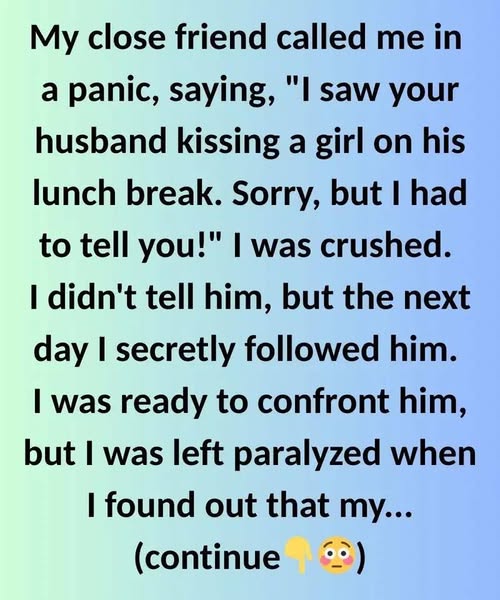 My close friend called me in a panic, saying, “I saw your husband kissing a girl on his lunch break. Sorry, but I had to tell you!”