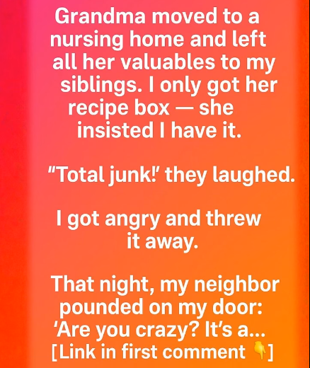 When my grandmother moved into a nursing home, our family gathered to divide her belongings. My siblings quickly claimed the jewelry, antiques, and heirlooms—things everyone considered valuable. To me, she gave a small, worn wooden recipe box. At first, I felt disappointed. My brothers and sisters teased me, calling it “junk,” and I wondered if she thought I wasn’t worthy of anything meaningful. Hurt, I set it aside.