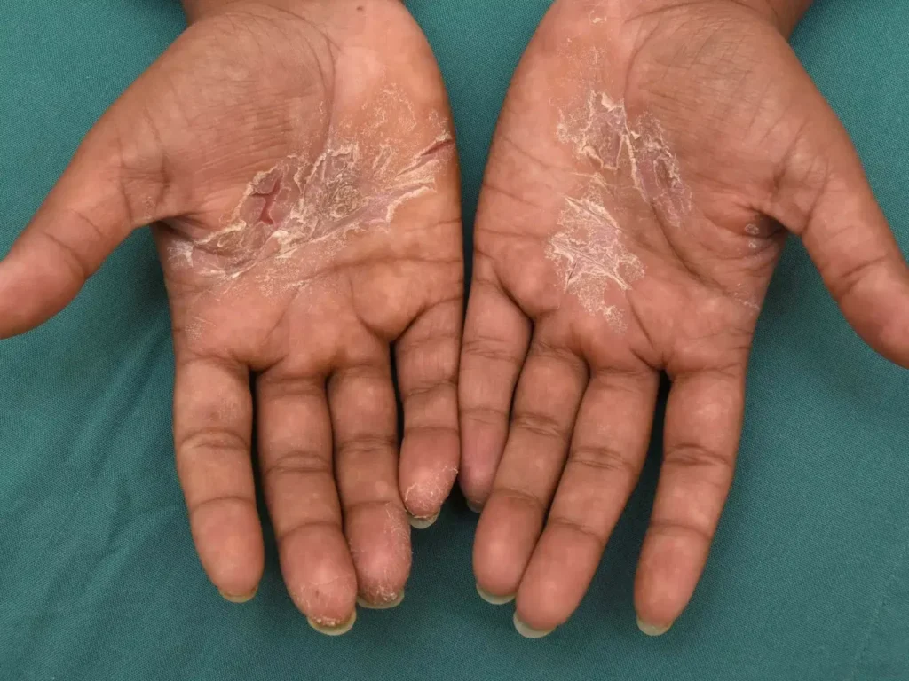 - Dryness and peeling – Flakes and scales often form as the outer layer of the skin breaks down.