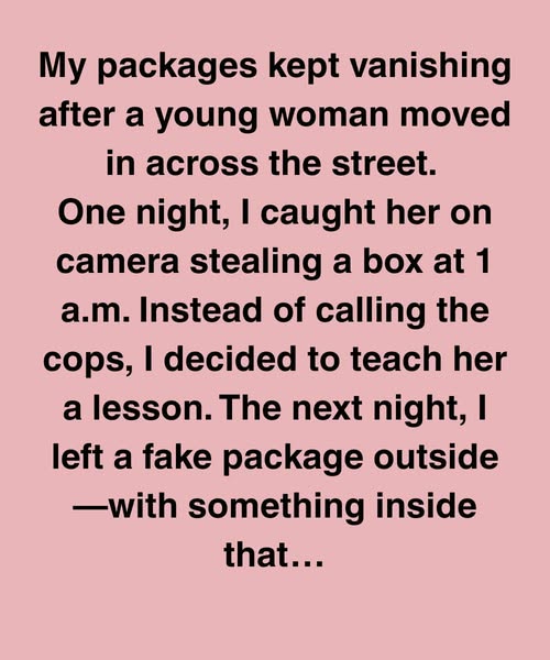 When my packages started disappearing, I set up a camera—and caught my new neighbor stealing one at 1 a.m. Instead of calling the cops, I left a decoy box filled with alarms and glitter. The next night, she grabbed it—and chaos erupted. Glitter exploded everywhere, alarms screamed, and she bolted. I laughed—until I saw the fear on her face. The next morning, I found her sitting on her porch, looking lost. Her name was Nella. She’d fled an abusive relationship, was broke, homeless, and stealing just to eat.