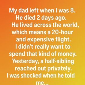 My dad left when I was 8. He died two days ago. He lived across the world, which meant a 20-hour and expensive flight. I didn’t really…