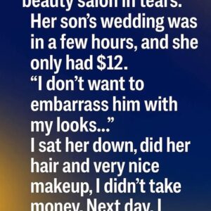 A woman came to my beauty salon in tears. Her son’s wedding was in a few hours, and she only had $12. “I don’t want to embarrass…