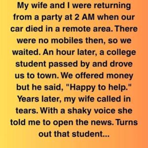 It began as an ordinary night—a long, late drive home that took an unexpected, unsettling turn. Our car broke down on a deserted stretch of road, hours…