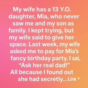 My wife has a 13-year-old daughter, Mia, who never saw me and my son as family. I kept trying, but my wife always told me to give…