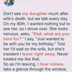 Don’t see my daughter much after wife’s death, but we talk every day. On my 80th, I wanted nothing but to see her, so I drove over….