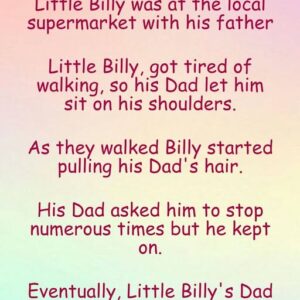 Little Billy was at the local supermarket with his father Little Billy, got tired of walking, so his Dad let him sit on his shoulders. As they…