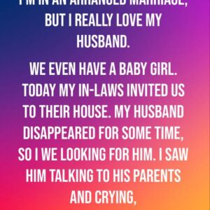I’m in an arranged marriage, but I really love my husband. We even have a baby girl. Today my in-laws invited us to their house. My husband…