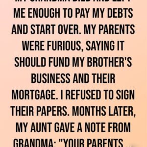 I read my grandmother’s note about fifty times the night my aunt handed it to me. The handwriting shook, but the words were sharp: “Your parents will…
