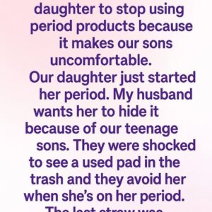 My husband wants our daughter to stop using period products because it makes our sons uncomfortable. Our daughter just started her period. My husband wants her to…