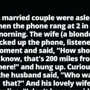 A married couple were asleep when the phone rang at 2 in the morning. The wife (a blonde) picked up the phone, listened for a moment, and…