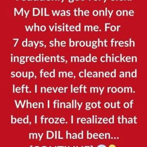 I suddenly became very sick. My DIL was the only one that visited me. For a week, she brought fresh ingredients, made chicken soup, fed me, cleaned…