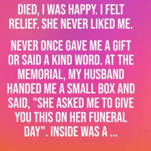 When my mother-in-law died, I was happy. I felt relief. She never liked me. Never once gave me a gift or said a kind word. At the…