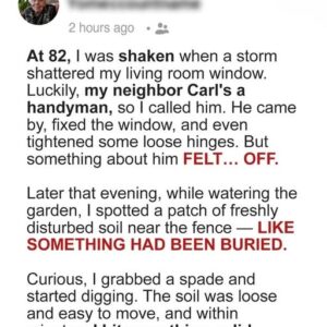 At 82, I was shaken when a storm shattered my living room window. Thankfully, my neighbor Carl, who often helps with repairs, came over right away. He…