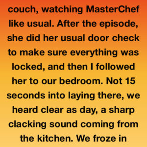 My wife and I were on the couch, watching MasterChef like usual. After the episode, she did her usual door check to make sure everything was locked,…