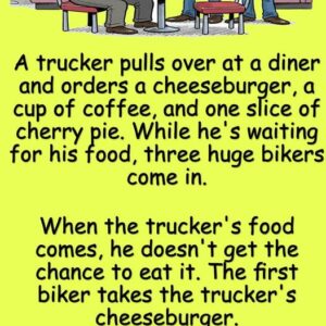 A trucker pulls over at a diner and orders a cheeseburger, a cup of coffee, and one slice of cherry pie. While he’s waiting for his food,…