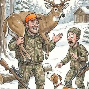 A group of friends went deer hunting and paired off in two’s for the day. That night one of the hunters returned alone, staggering under the weight…