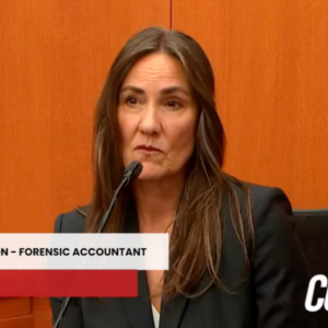 Forensic accountant Brooke Harrington testifies about Kouri Richins’ growing debt and the financial benefits she received from her husband’s life insurance policy after his death. Credit: Court TV/Pool An…