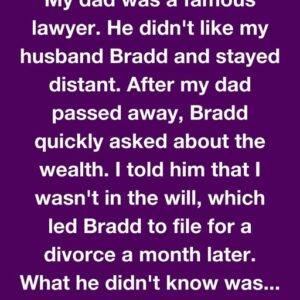My dad was a famous lawyer. He didn’t like my husband Bradd and stayed distant. After my dad passed away, Bradd quickly asked about the wealth. I…